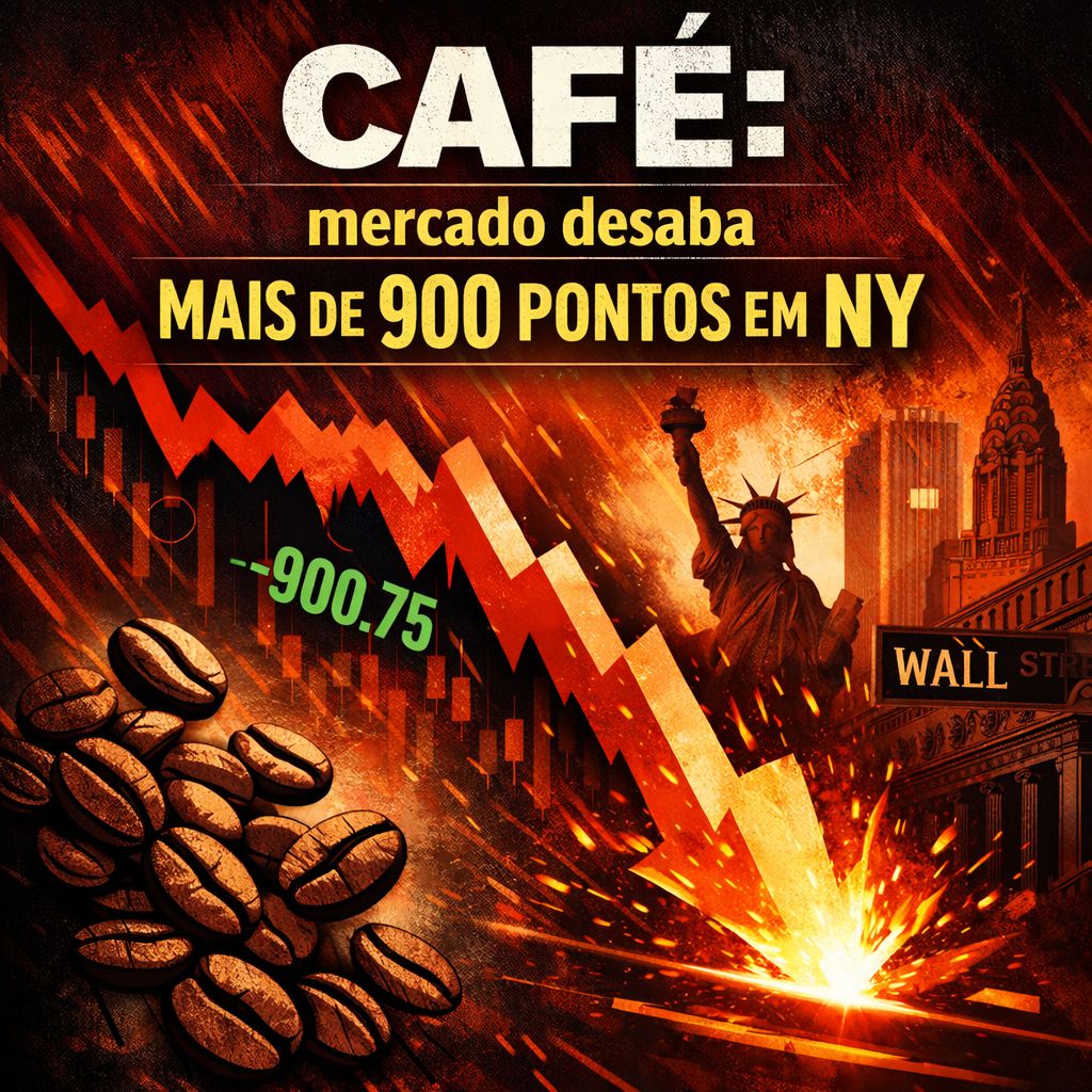 Na bolsa de Nova York, o café arábica registrou queda acentuada. O contrato maio/26 fechou cotado a 292,55 centavos de dólar por libra-peso, com recuo de 915 pontos. O julho/26 caiu 930 pontos, a 286,60 centavos/lb, enquanto o setembro/26 recuou 900 pontos, encerrando a 275,60 centavos/lb.