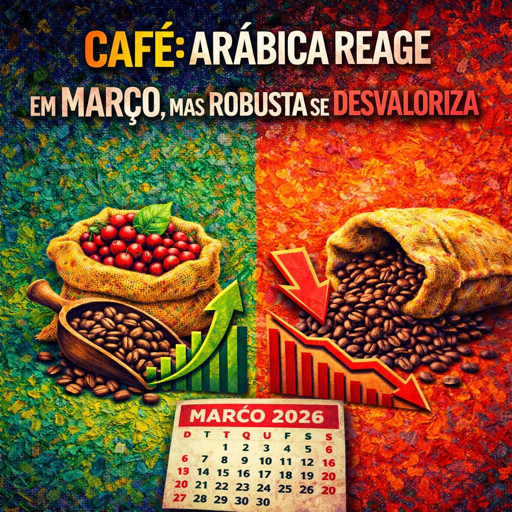 O mês de março se encerrou com movimentos distintos para os preços dos cafés arábica e robusta. Segundo pesquisadores do Cepea, enquanto o arábica voltou a se valorizar, ainda em função da oferta limitada e de preocupações geopolíticas, o do robusta seguiu enfraquecido em boa parte de março, uma vez que a oferta da variedade é um pouco maior que a do arábica. Além disso, a proximidade da colheita também reforça o movimento de baixa no preço do robusta. Pesquisadores do Cepea destacam que a valorização do arábica em março superou até mesmo o impacto vindo das boas projeções de safra no Brasil para a colheita 2026/27, que deve ganhar ritmo entre maio e junho. A safra é aguardada com expectativa positiva, pois pode representar a primeira colheita recorde no Brasil após cinco temporadas em que a produção da variedade ficou aquém do potencial produtivo, especialmente devido às condições climáticas nas principais regiões cafeeiras do País. Para o robusta, a perspectiva é de que volumes de robusta da temporada 2026/27 comecem a ser colhidos e entrem no mercado entre abril e maio, condição que tende a manter as cotações pressionadas.